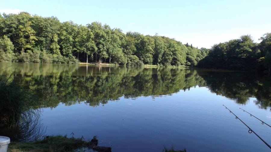 Lac de lion is a spring fed 5 acre lake with depths of just under a metre at the inlet to 3 metres at the furthest corner of the dam wall and an average depth of 2 metres. With no snags, weeds, poisson chats in the lake, the bottom made up of sand, clay, stones and pockets of silt and the old stream bed running through the lake it makes for very easy fishing. 6 swims are available around the lake, all able to accommodate a large bivvy, and in many of them your able to double up in if required, allowing you to fish the whole lake, The area around the lake is grass with trees and bushes around it making it a very tranquil place to fish, There are deer and boar in the surrounding woodland with frogs ( you won't believe the sound) and kingfishers to keep you company at the lake side.